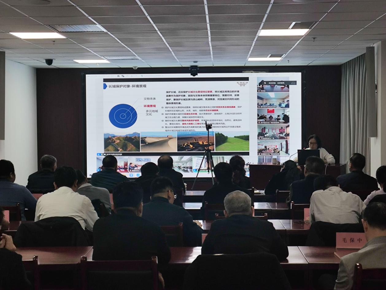 培训特邀中国文化遗产研究院科研综合管理处副处长(主持工作)、副研究馆员、中国长城学会常务理事刘文艳担任主讲。刘文艳以《长城保护管理工作述要与专项工作》为题,从长城保护历程与价值认知、法规体系与管理体制、保护对象内涵及现行规范标准、展示利用实践案例与经验思考、近期重点专项工作等五个方面,系统阐述了长城保护管理的理论框架与实践路径,为我省进一步做好长城保护利用工作开阔了新视野、拓展了新思路。